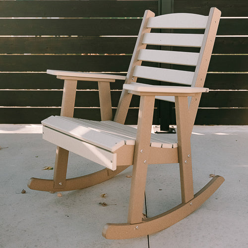 Rock in style with Polybird’s P77 Rocking Chair.  The perfect addition to any front porch. Stainless steel hardware allows this rocker to perform well in any environment.   Available in 15 vibrant color options to match any style. Made from durable HDPE material, it offers low-maintenance care, allowing you to sit back, unwind, and enjoy year-round comfort without worry.