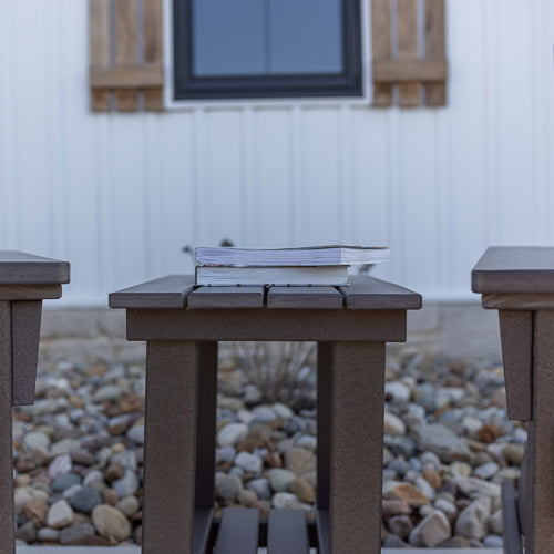 This modern end table is the perfect addition to any outdoor space, especially when paired with modern Adirondack chairs. Its sleek design and contemporary style bring a touch of sophistication while also providing a functional surface for drinks, snacks, and more. Elevate your outdoor lounging experience with this stylish and practical end table.
